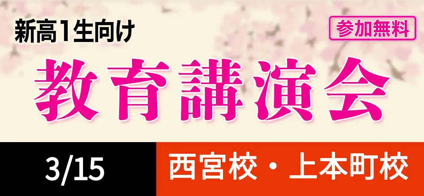 | 日程 | 西宮校 3月15日(日) 11:00~12:00 上本町校 3月15日(日) 14:30~15:30 ※定員に達し次第締切となる場合があります。 |