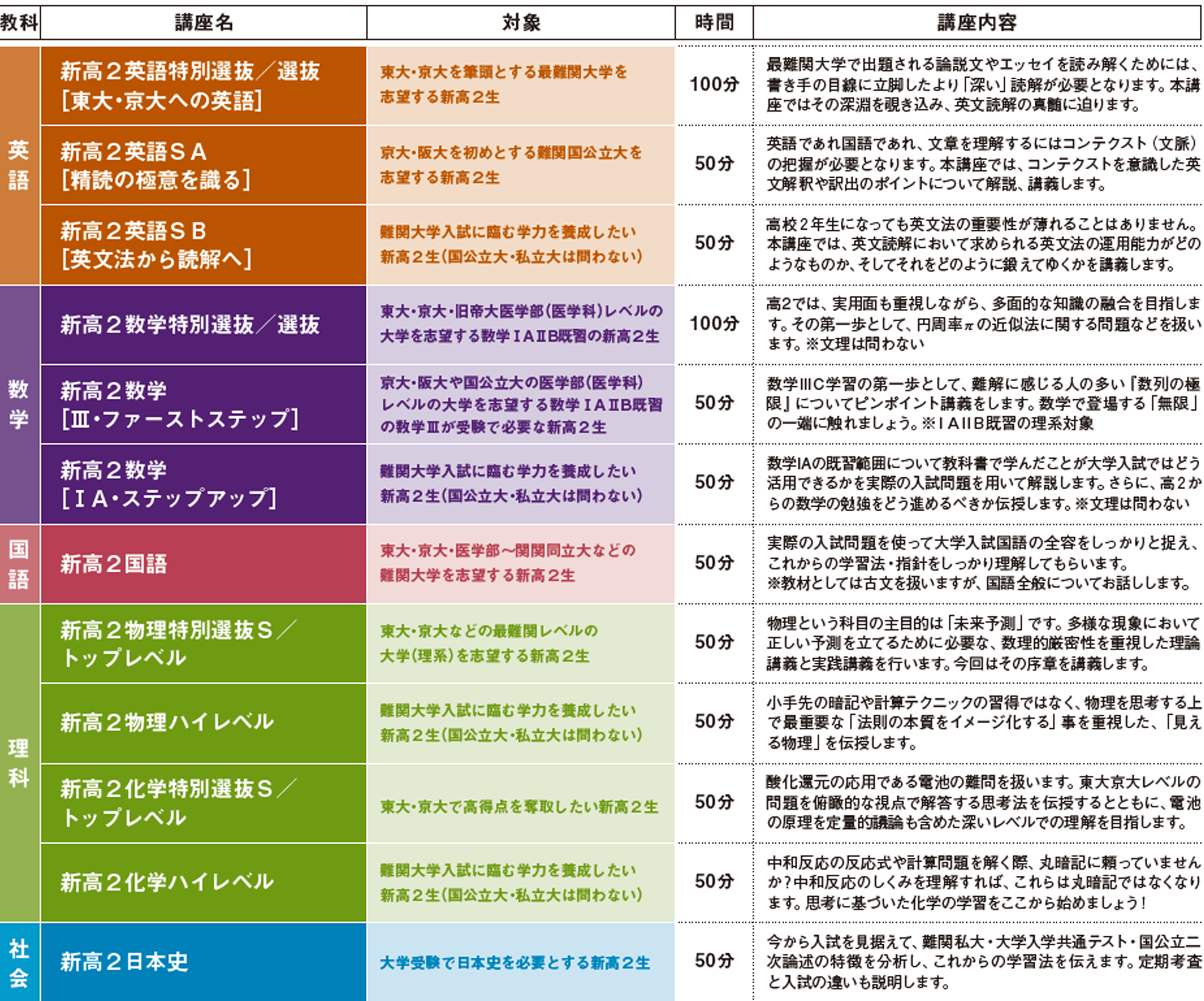 - 特別講座「WEB申込」フォームにも新学年相談会の申込欄がございます。特別講座を申し込まれる方は、そちらから一緒にお申し込みください。