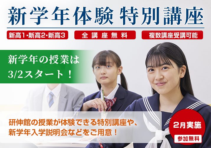 研伸館では、3月から新学年の授業がスタート!3月期1回目の授業を体験し、2週目から入学することもできます。